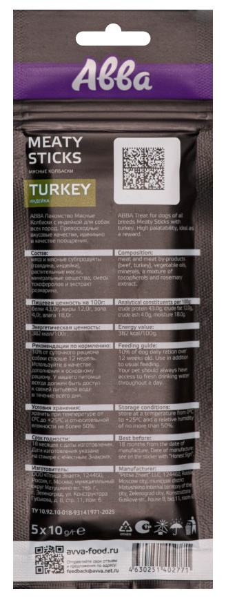 Мясные колбаски АВВА– это идеальный источник протеина и полезных веществ для вашей собаки, а также вкусное поощрение во время дрессировки. Непревзойдённый вкус порадует даже самого требовательного гурмана.