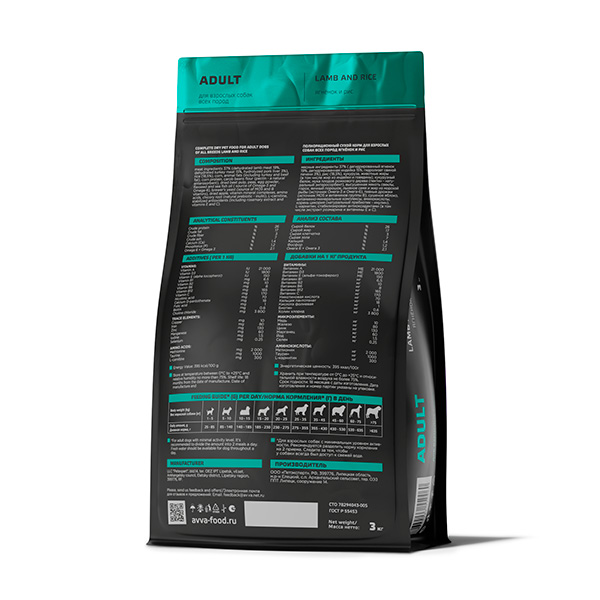 Каталог корма для взрослых собак AVVA Назад