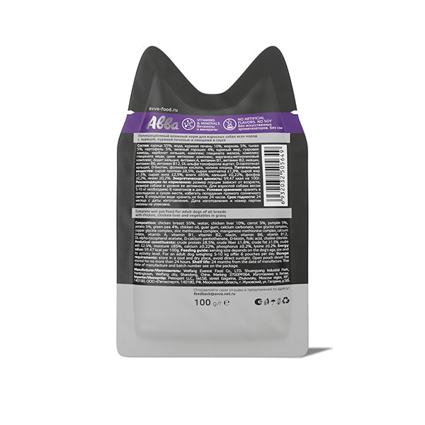 АВВА паучи с уткой, утиной печенью и овощами в соусе - полнорационный влажный корм для собак всех пород. Нежные волокна в аппетитном соусе, приготовленные до идеально мягкой консистенции, подарят истинное удовольствие вашему питомцу.