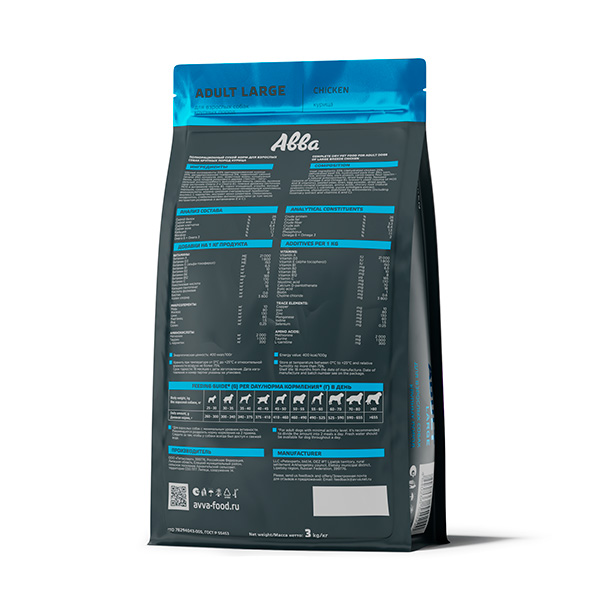 АВВА Premium Adult Курица – это полнорационный, сбалансированный корм для взрослых собак крупных пород, который учитывает все тонкости питания. В составе глюкозамин и хондроитин для поддержания здоровья и работы суставов, что очень важно для крупных собак. Улучшенный состав без пшеницы.