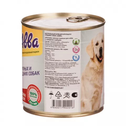 Консервированный мясной рацион АВВА с говядиной и рубцом предназначен для взрослых собак любой породы. Корм характеризуется высоким содержанием натурального мяса и мясных продуктов.