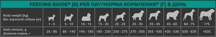 При переходе на корм АВВА постепенно вводите его в рацион собаки в течение 4-5 дней. Разделите дневную норму, указанную в таблице, на количество кормлений в день. Придерживайтесь рекомендуемых норм кормления, индивидуальная норма кормления Вашей собаки зависит от ее возраста, условий содержания, темперамента и активности. У собаки должна быть постоянно чистая и свежая вода для питья. Корм полнорационный и сбалансированный, поэтому дополнительное добавление витаминов или минералов в рацион собаки не требуется.